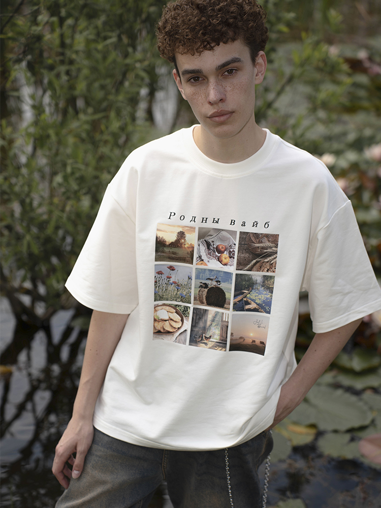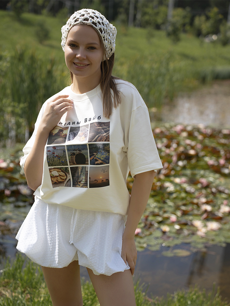 Стильная базовая футболка из плотного трикотажа с принтом, вдохновлённым атмосферой родных пейзажей. Мягкая на ощупь, комфортная в носке и отлично держит форму.