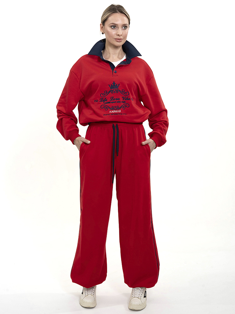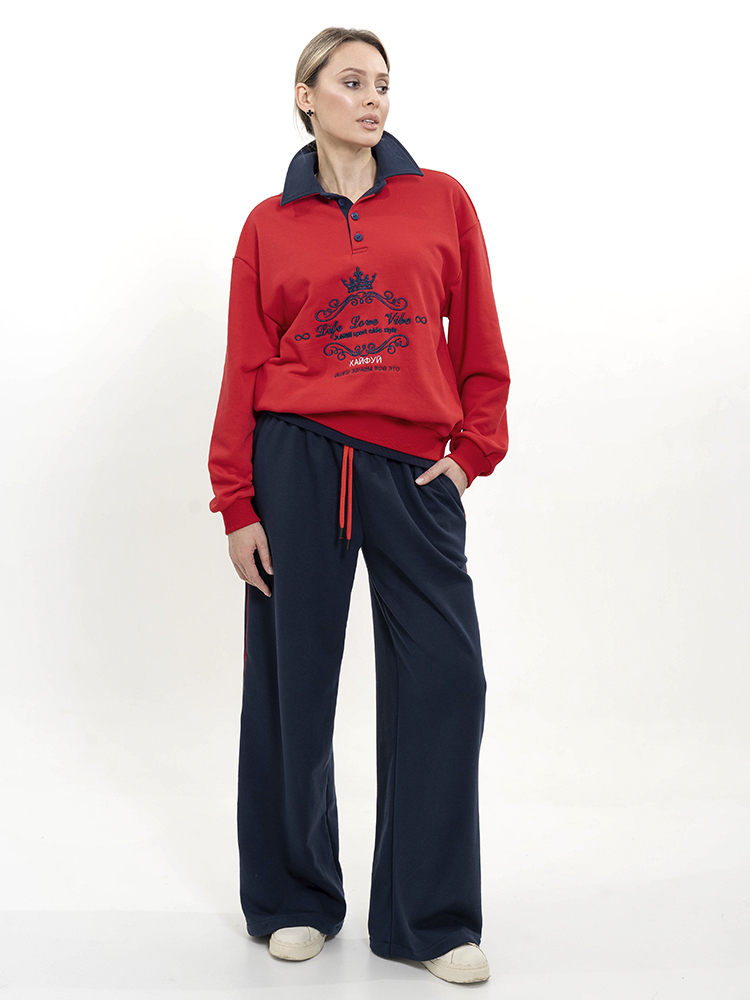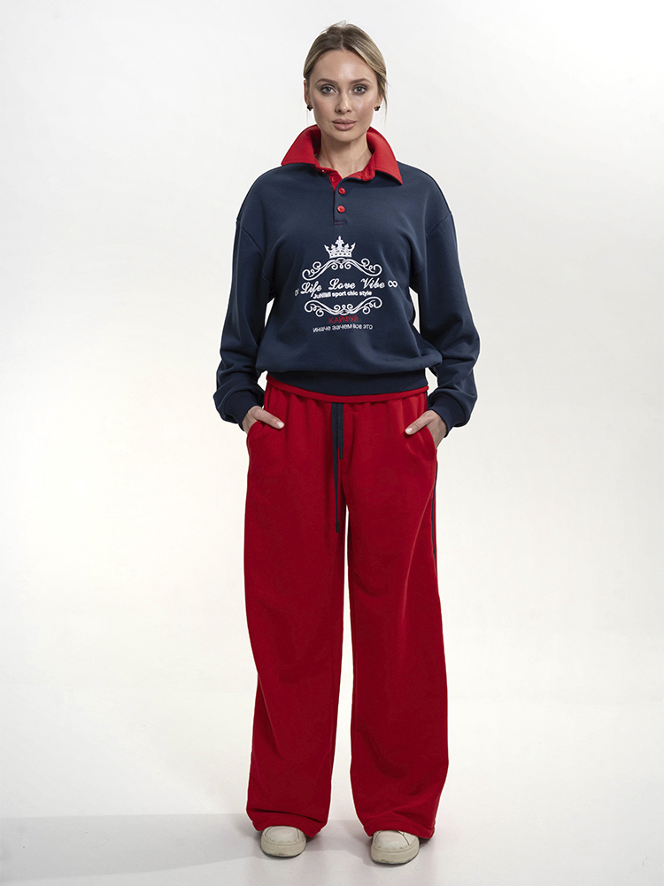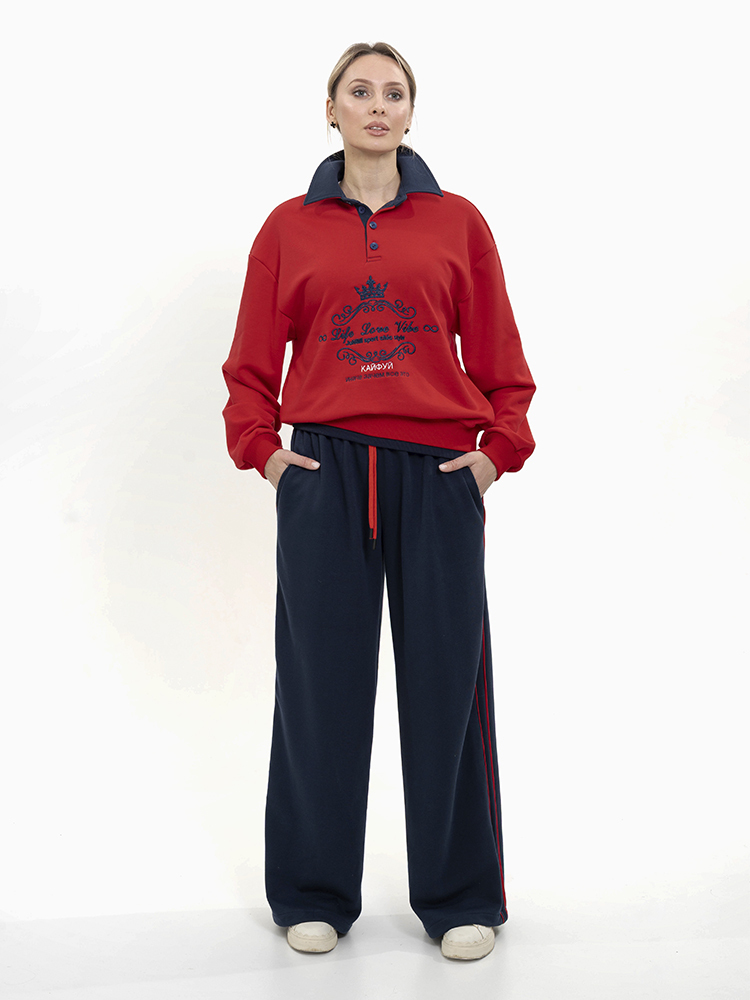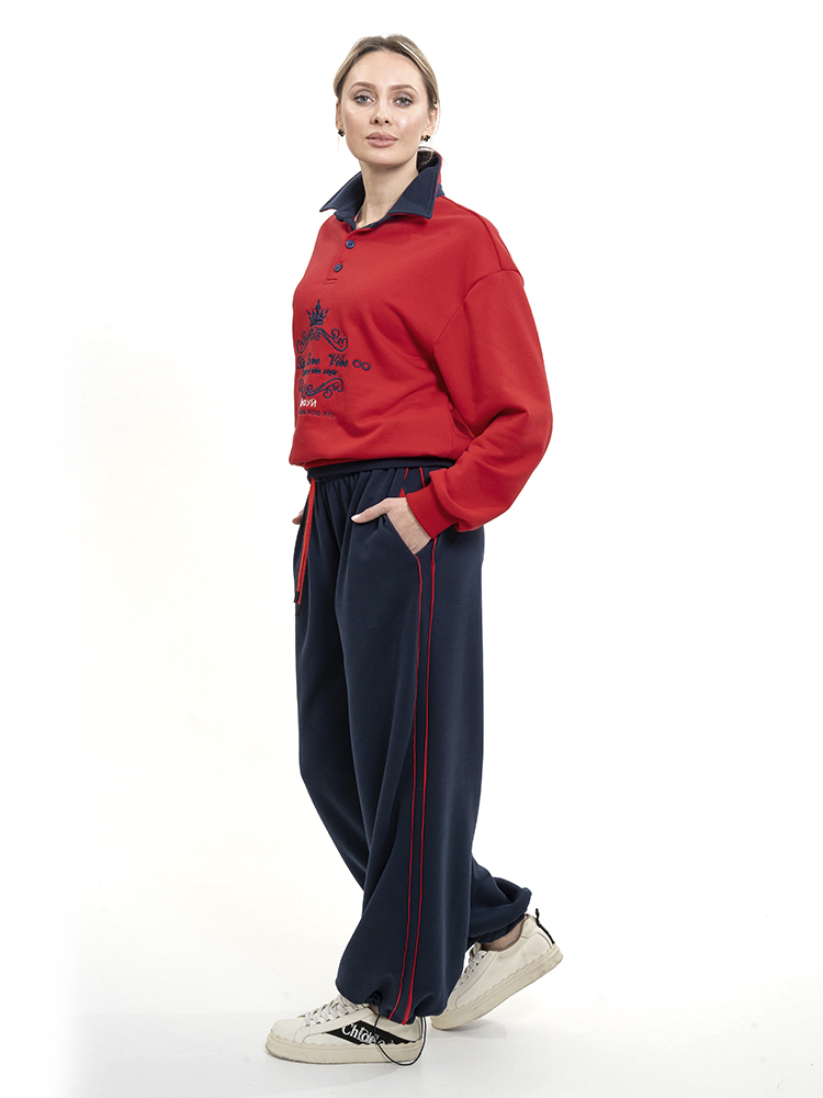 Стильный костюм в стиле спорт-шик — универсальный вариант для прогулок, путешествий и лёгкой физической активности. Представлен в оттенках «Синий сапфир» и «Красный Чили». Вы можете самостоятельно выбрать цветовое сочетание лонга и брюк, создавая образ в едином тоне или комбинируя контрастные варианты.