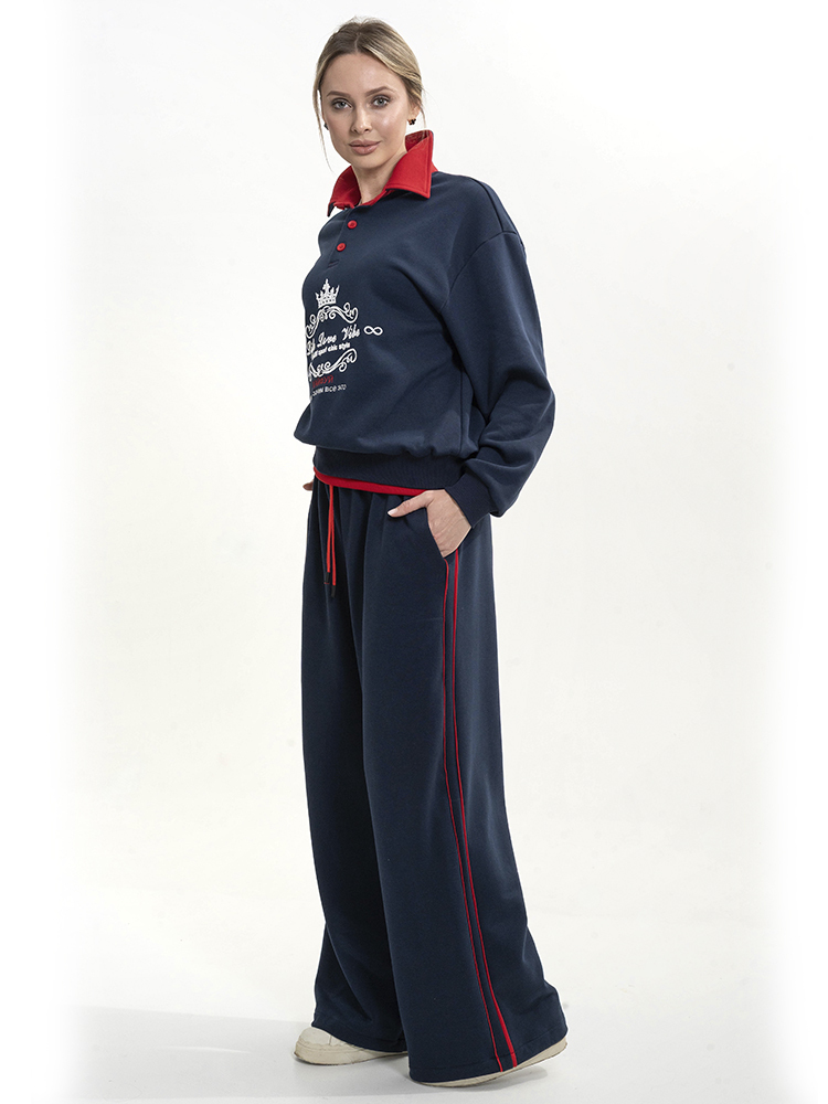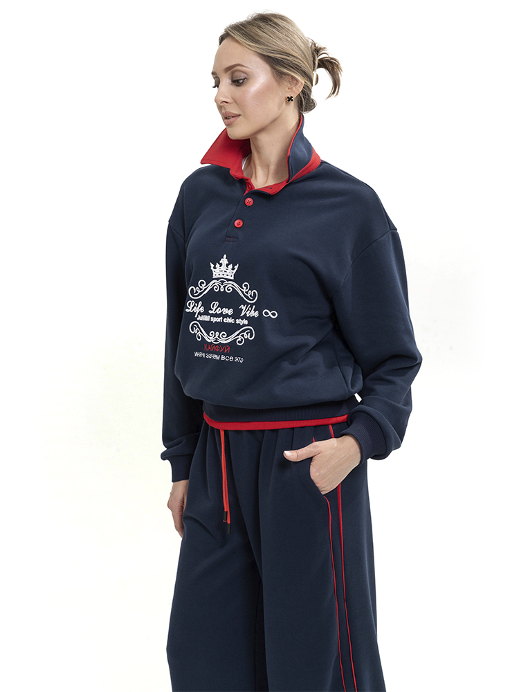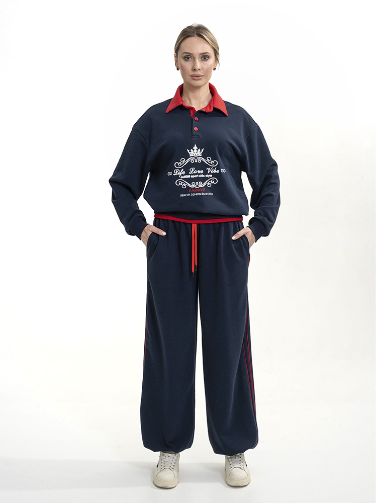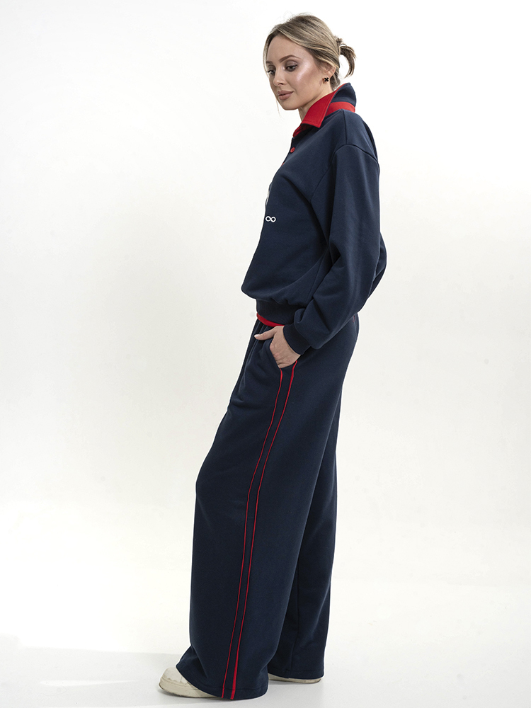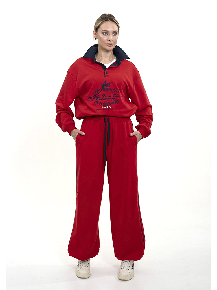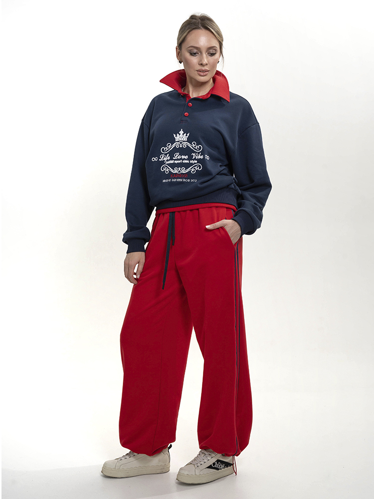 Стильный костюм в стиле спорт-шик — универсальный вариант для прогулок, путешествий и лёгкой физической активности. Представлен в оттенках «Синий сапфир» и «Красный Чили». Вы можете самостоятельно выбрать цветовое сочетание лонга и брюк, создавая образ в едином тоне или комбинируя контрастные варианты.