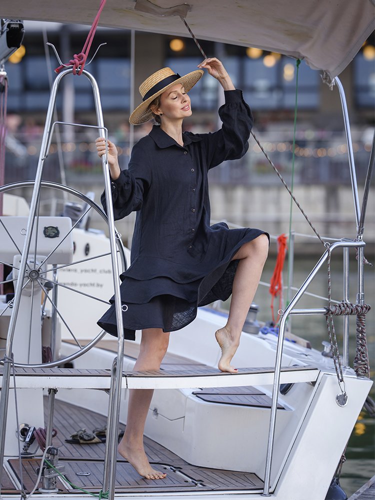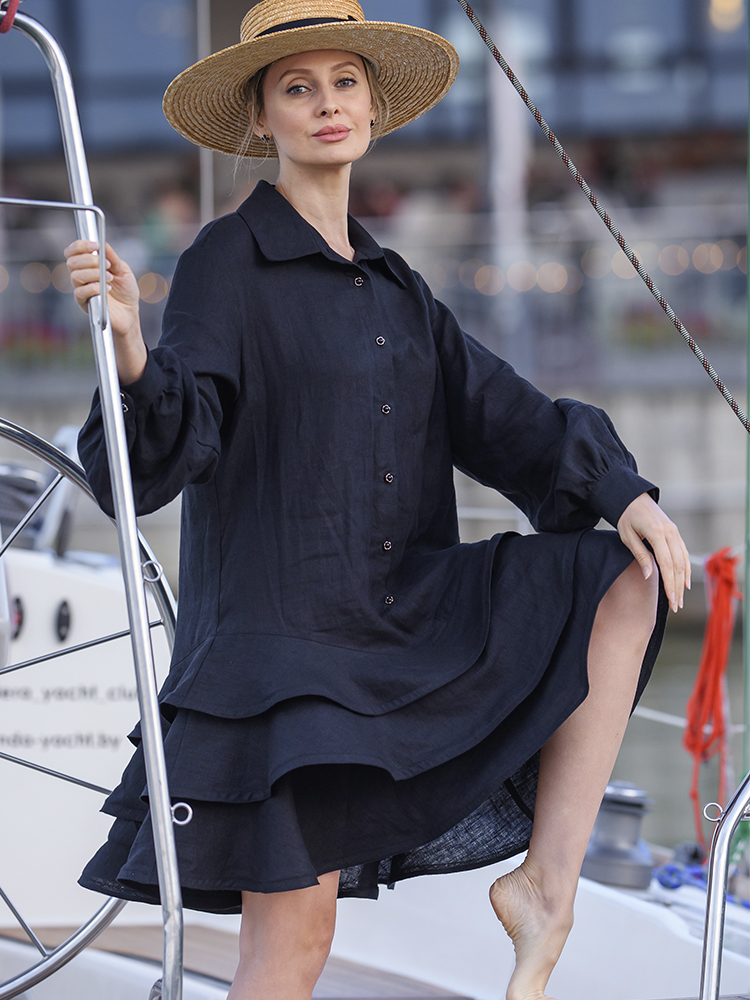 Представляем вашему вниманию платье от бренда JuNi Brand, выполненное из высококачественного льна. Свободный крой подарит вам комфорт и свободу движений, а входящий в комплект пояс позволит подчеркнуть талию и создать элегантный образ (ширина пояса - 6 см). Главной особенностью этой модели являются жемчужные пуговицы в форме прекрасной розы – они придадут образу особый шик и индивидуальность! Это платье станет отличным выбором для тех, кто ценит качество, стиль и удобство.
