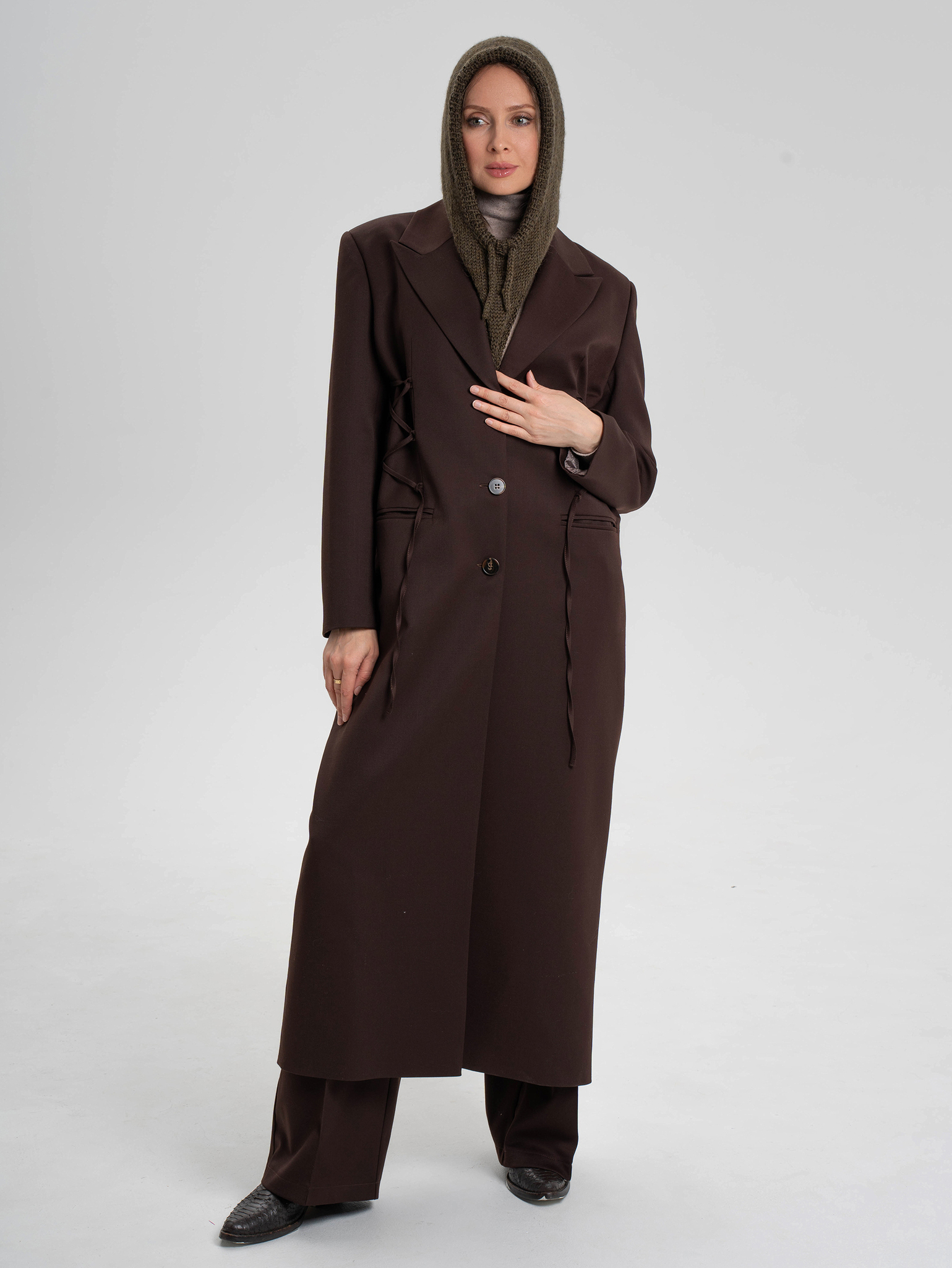 Жакет «Светлый Графит» удлиненный с боковой функциональной шнуровкой.